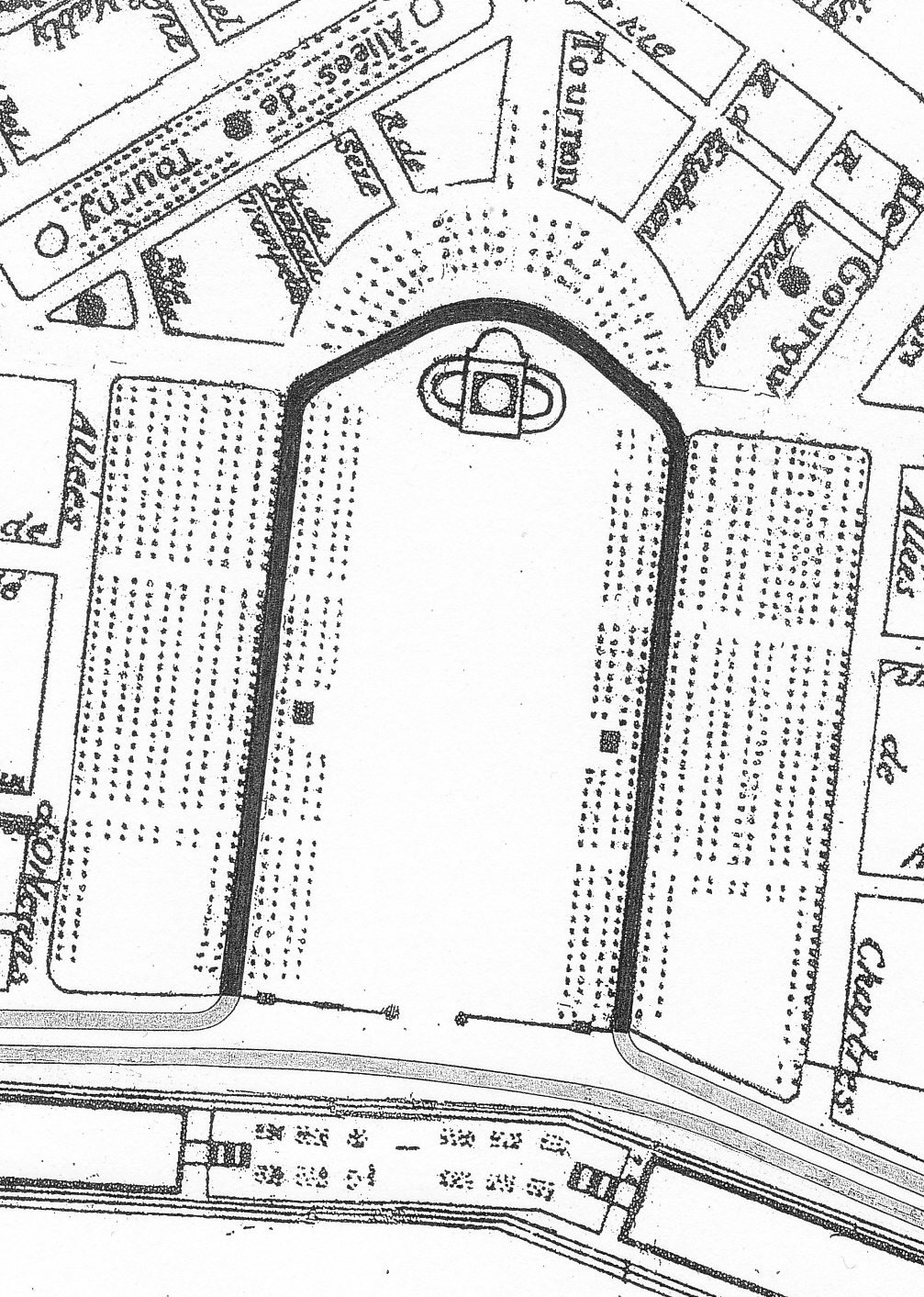 Correspondant à la partie haute du tracé en noir, entourant le Monument aux Girondins, le tracé de l'allée de Los Angeles